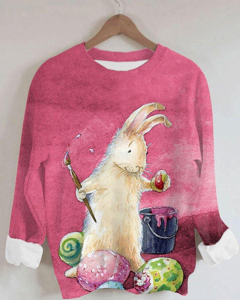 Women's Bunny Print Long Sleeve Round Neck Sweatshirt