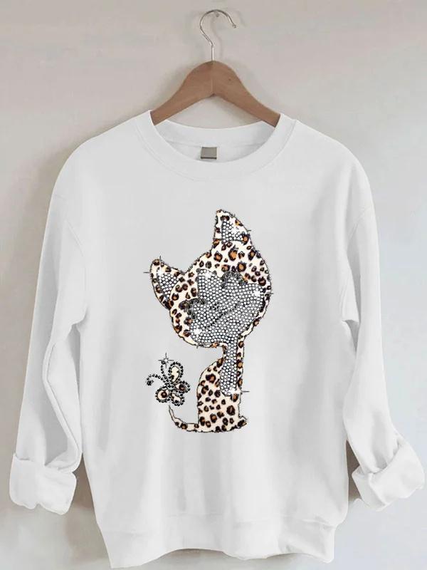 Women's Funny Bling Leopard Cat Print Casual Sweatshirt