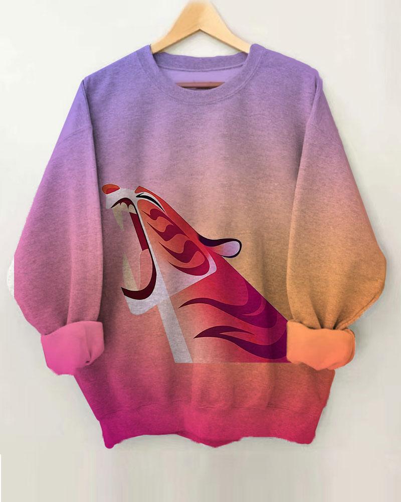 Women's Tiger Print Long Sleeve Round Neck Sweatshirt