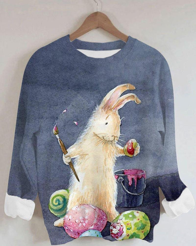 Women's Easter Bunny Print Round Neck Long Sleeve Sweatshirt
