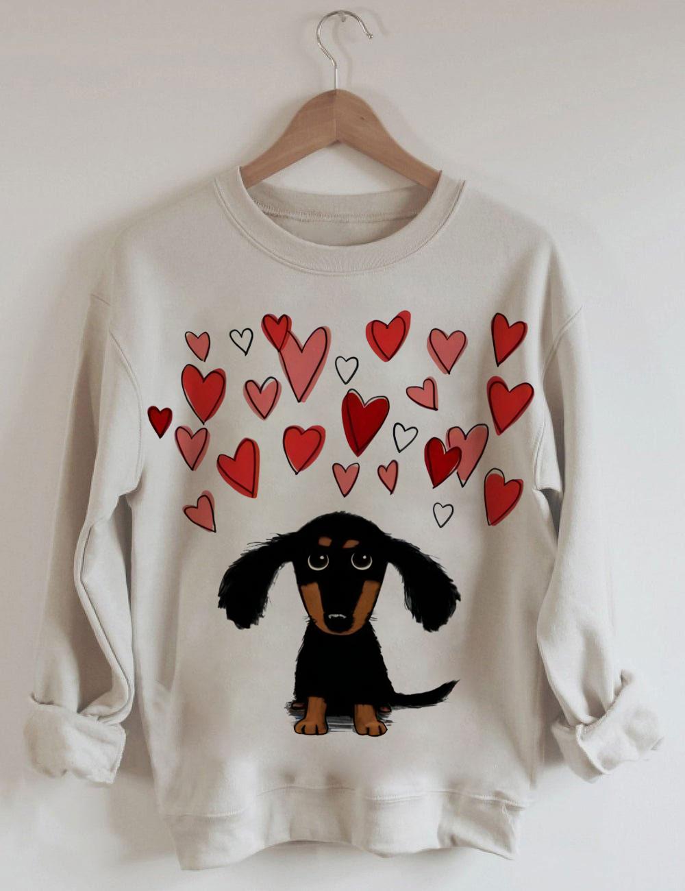 Women's Dog Love Print Long Sleeve Round Neck Sweatshirt