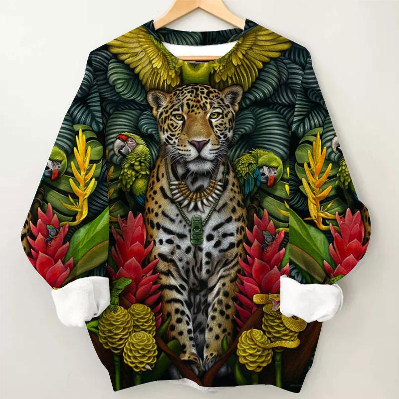 Women's Leopard Plant Print Long Sleeve Round Neck Sweatshirt