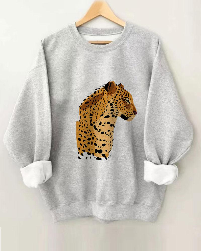Women's Leopard Head Print Long Sleeve Round Neck Sweatshirt