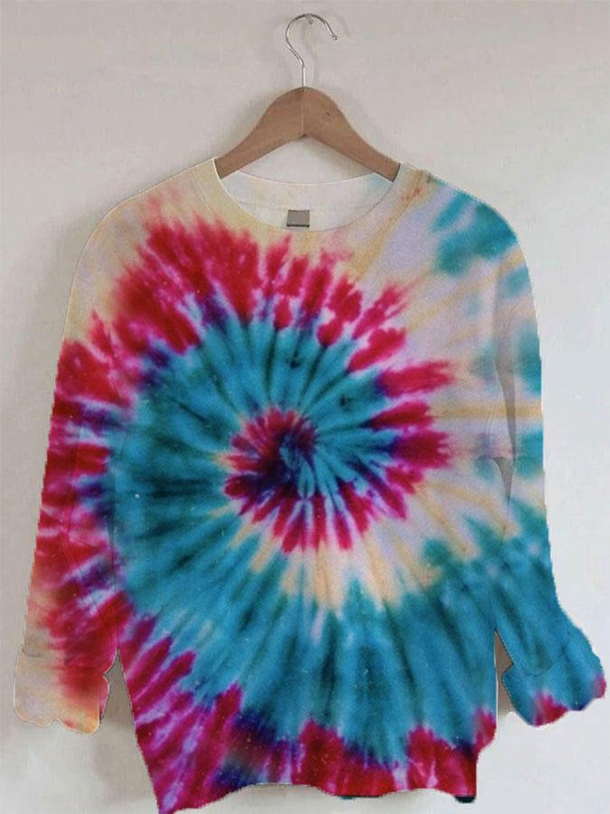 Women's Tie Dye Blue And Pink Spiral Texture Print Sweatshirt