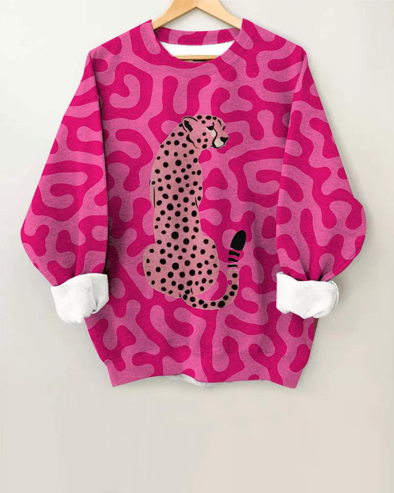 Women's Cheetah Art Print Round Neck Long Sleeve Sweatshirt