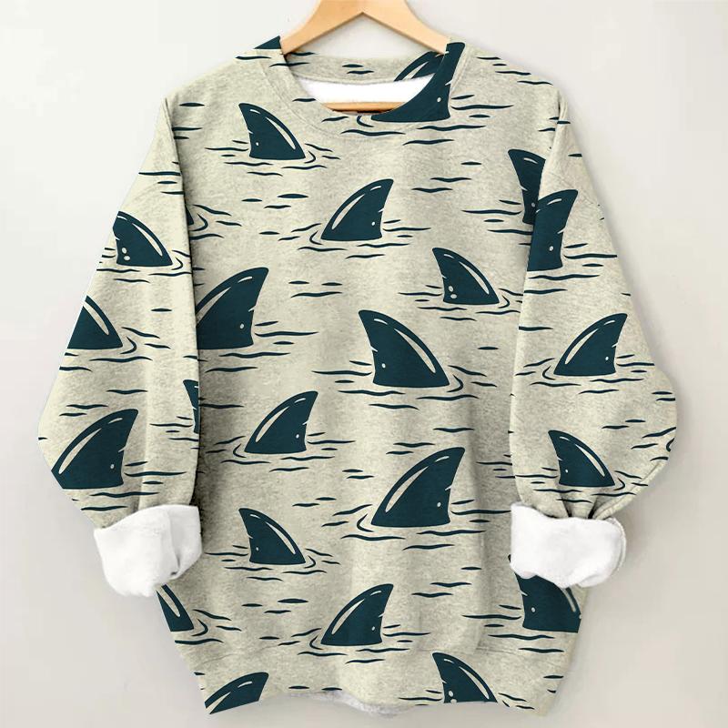 Women's Fun Small Shark Print Long Sleeve Casual Hoodie