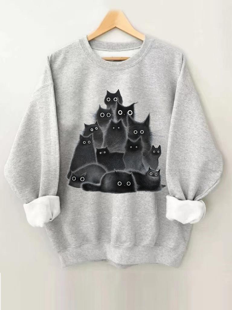 Women's Cats Print Long Sleeve Round Neck Sweatshirt