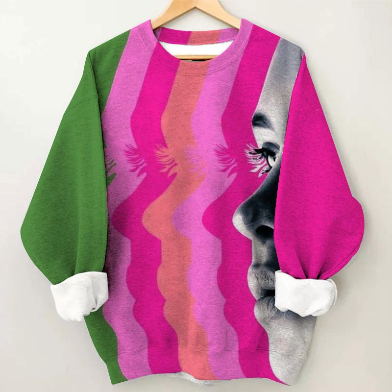 Woman's Art Print Long Sleeve Round Neck Sweatshirt