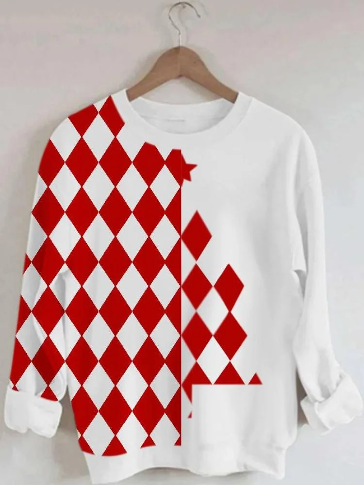 Women’s Oval Printing Long Sleeve Round Neck Sweatshirt