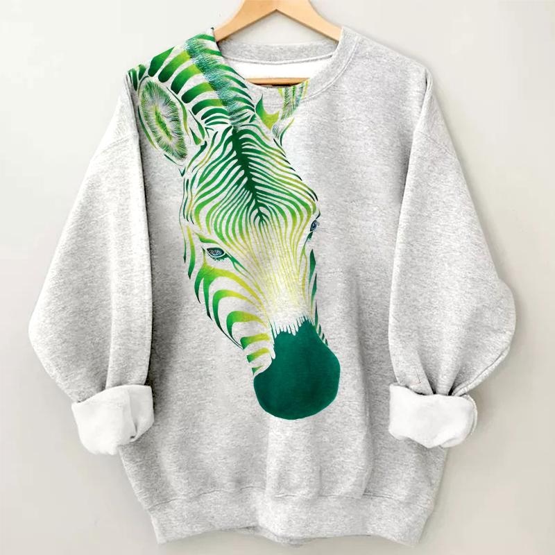 Women's Zebra Print Round Neck Long Sleeve Sweatshirt