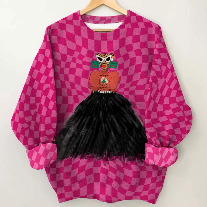 Woman's Funny Avatar Print Long Sleeve Round Neck Sweatshirt